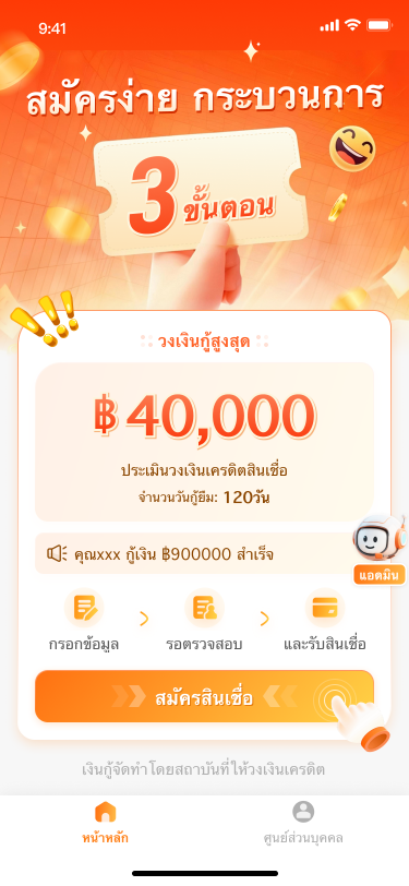 - วงเงินกู้: สูงสุด 40,000 บาท